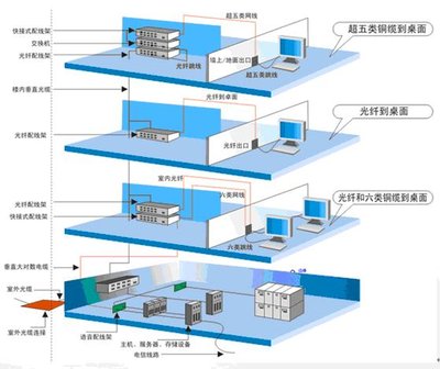 综合布线又称智能建筑布线系统,该系统是一个由非屏蔽阻燃全系列产品组成的开放系统体系。它将办公自动化、通信自动化、电力、消防等安保监控系统结合起来。布线系统采用模块化设计,以实现灵活、管理方便、易于扩充、符合六类高标准布线系统。系统以可靠性、安全性、标准化及通用性、良好的扩展性为原则,能够支持现有各种网络结构及协议,同时兼顾布线技术和网络技术的发展,以满足现代新技术的不断发展综合布线系统分为建筑物子系统、干线子系统、配线子系统。每个子系统内都由配线架、干线光缆或电缆、配线设备、设备线缆、信息插座等组成。子系统与子系统之间通过配线架由光缆进行连接。